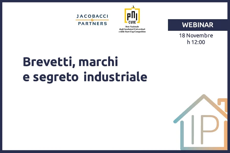 Martedì 18 novembre si è svolto il webinar “Brevetti, Marchi e Segreto Industriale: strategie IP per le start-up”, con gli interventi di Patrizio de Ferri e Valerio Verdecchia.
